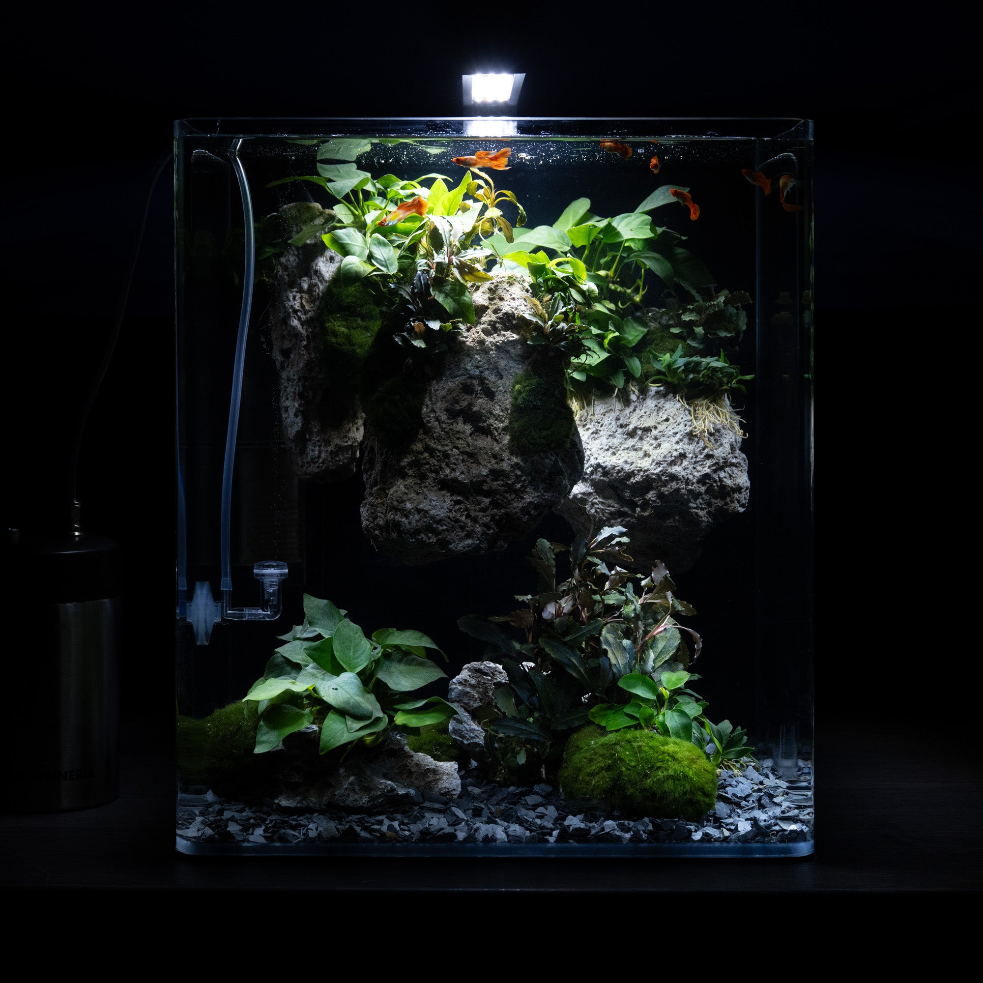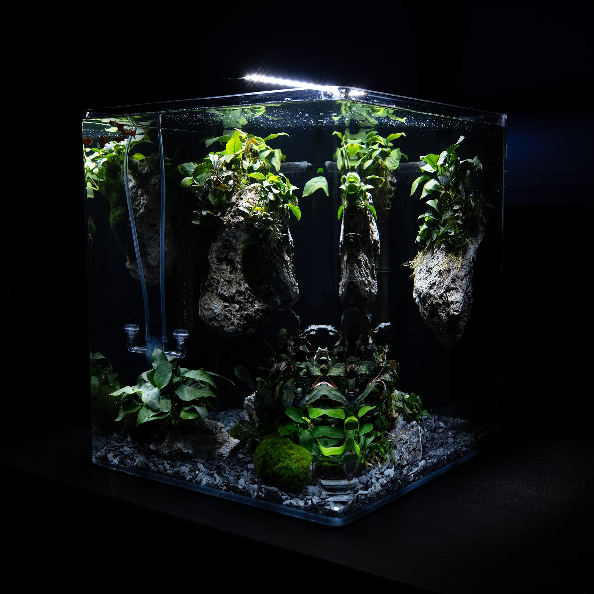 Genau dieses surreale Bild lässt unser 60-Liter-Nano Cube „The Floating Stones“ Wirklichkeit werden.