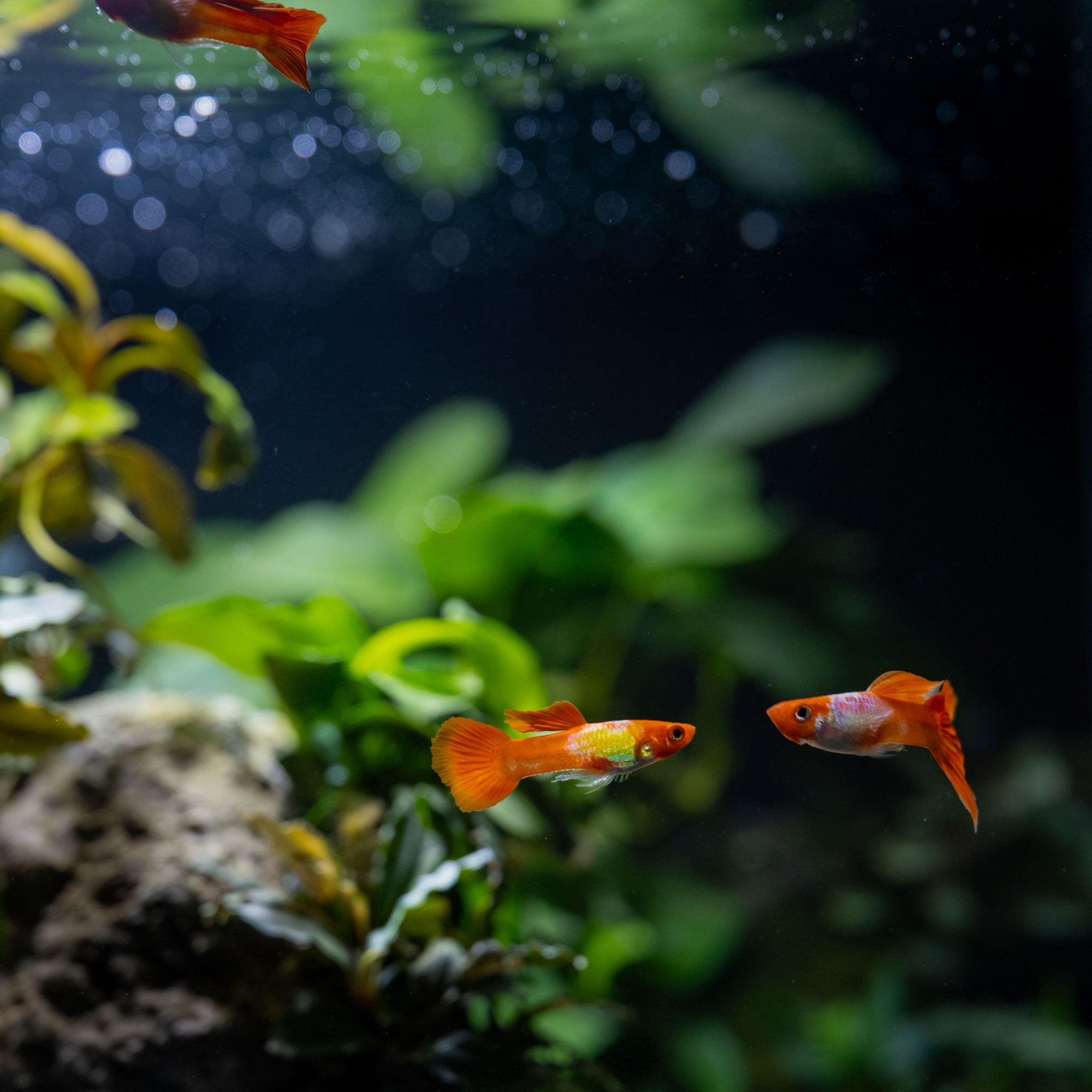 Stell dir vor, du betrittst eine Szenerie, die direkt aus einem Sci-Fi-Abenteuer stammen könnte: Schwerelos wirkende Felsen schweben über dem Bodengrund, grüne Pflanzen krallen sich an ihre rauen Oberflächen – und mittendrin ziehen leuchtend orange Guppys lautlos ihre Bahnen, wie Vögel zwischen schwebenden Inseln.