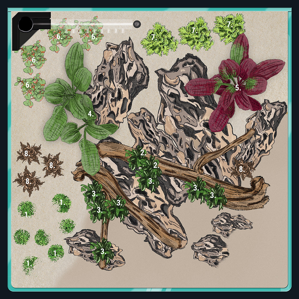 Imagine yourself standing on the shore of a deserted tropical island: In the foreground, fine sand reflects in the crystal-clear water, while steep cliffs and dense vegetation rise up behind it – a true eye-catcher that promises both tranquility and adventure. This is precisely the feeling we aim to capture with the "Island Style" layout. Here, a nearly pristine expanse of sand meets lush vegetation, separated only by an imposing cliff edge of onko stones.