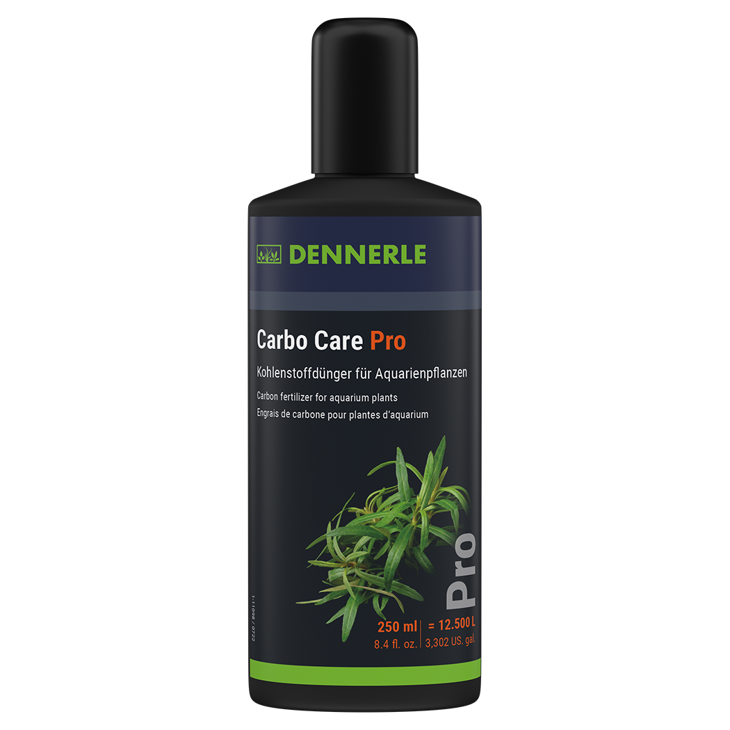When dosed and used correctly, Carbo Care Pro is safe for all fish, plants, shrimps, snails, filter bacteria and other aquarium inhabitants, even when used long-term. The product had to undergo a long-term practical test in various aquariums and under various conditions. User safety is a very high priority at Dennerle. The old rule also applies to the active ingredient glutaraldehyde: the dose makes the poison. Glutaraldehyde in concentrated form is a hazardous substance. At a dosage of 3 ml per 100 L of aquarium water, the active ingredient is diluted by a factor of 33,000. This application concentration is sufficient to significantly promote plant growth, but is so low that the aquarium inhabitants cannot be negatively affected. In addition, glutaraldehyde is readily biodegradable in the application concentration used here. What the plants do not absorb is "eaten" by the filter bacteria - all that remains is CO 2 , which in turn benefits the plants, and water. Even with long-term use, there is no accumulation of glutaraldehyde in the aquarium. A safety buffer is built into the dosage. Even accidentally dosing twice will not lead to negative effects. However, you should generally follow the recommended and proven dosage and not overdose on Carbo Care Pro .