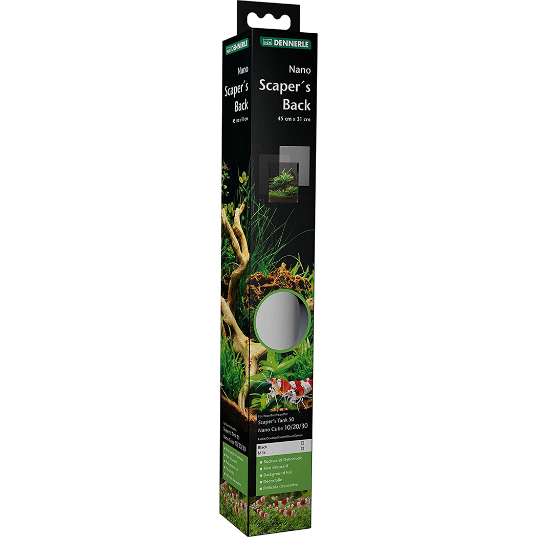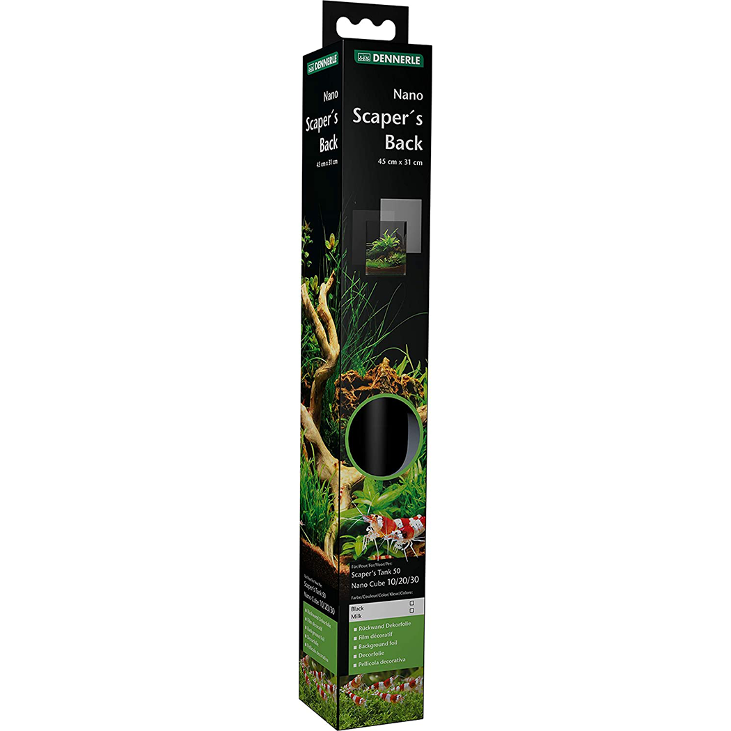 Die Scaper's Back ist eine einfach anzubringende und wieder ablösbare Adhäsionsfolie, die mit einer Höhe von 31 cm für den Nano Tank 55 L geeignet ist. Bei der Installation am Nano Tank 55 L ist zu beachten, dass die Folie 3 cm kürzer ist als das Aquarium mit einer Höhe von 34 cm. Die fehlende Höhe lässt sich jedoch leicht durch den Bodengrund verdecken.
